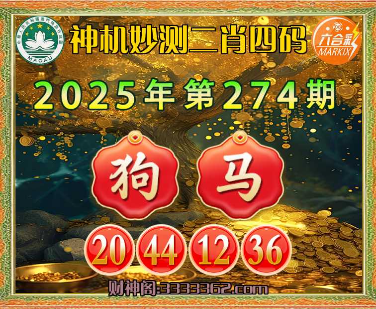 274期: 神机妙测 🥽二肖四码🥽【马】【20.44.12.36】开:狗44