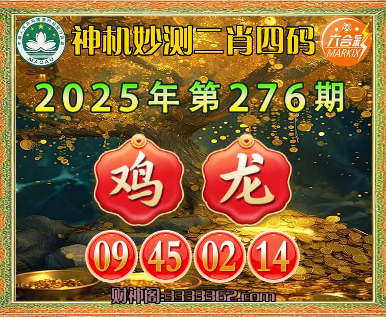 276期: 神机妙测 🥽二肖四码🥽【龙】【09.45.02.14】开:鸡09