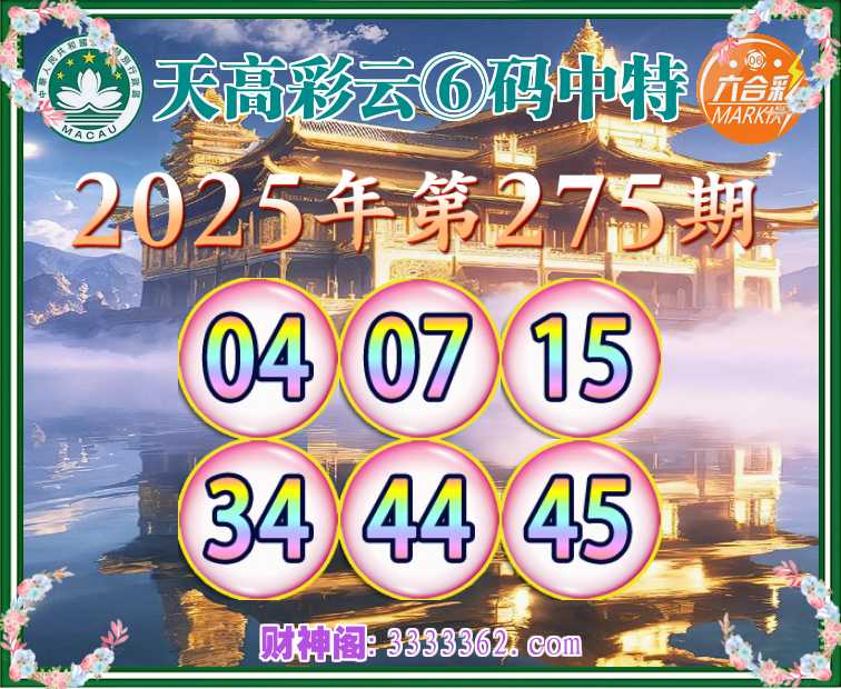 275期:《天高彩云》 👉⑥码中特👉【04.07.15.34.44.45】开:45