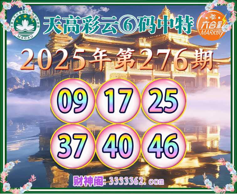 276期:《天高彩云》 👉⑥码中特👉【09.17.25.37.40.46】开:09