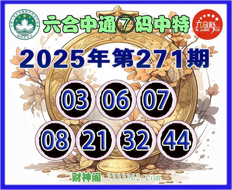 271期:【六合中通】 💎⑦码中特💎【03.06.07.08.21.32.44】开:06