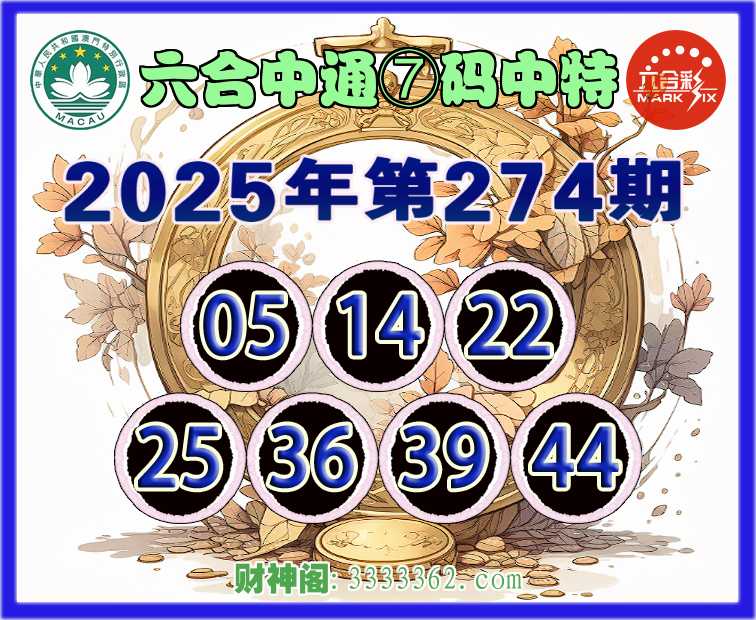 274期:【六合中通】 💎⑦码中特💎【05.14.22.25.36.39.44】开:44
