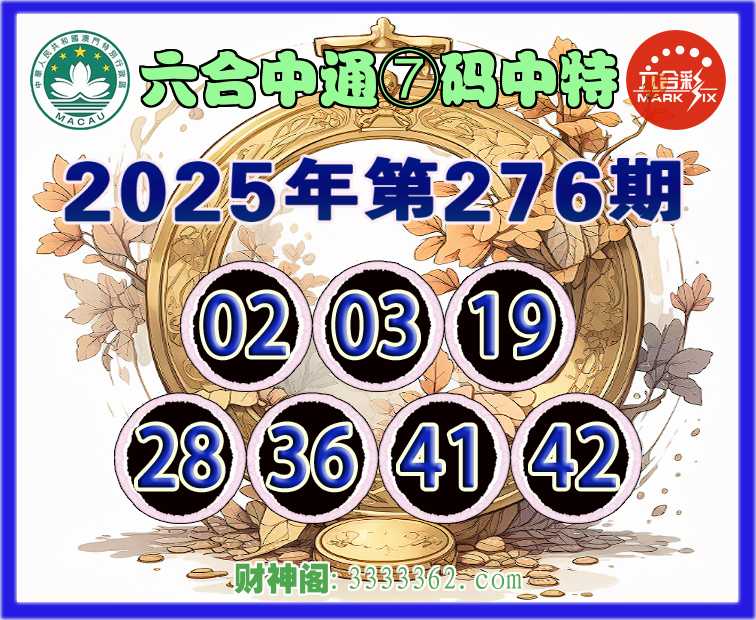 276期:【六合中通】 💎⑦码中特💎【02.03.19.28.36.41.42】开:00准