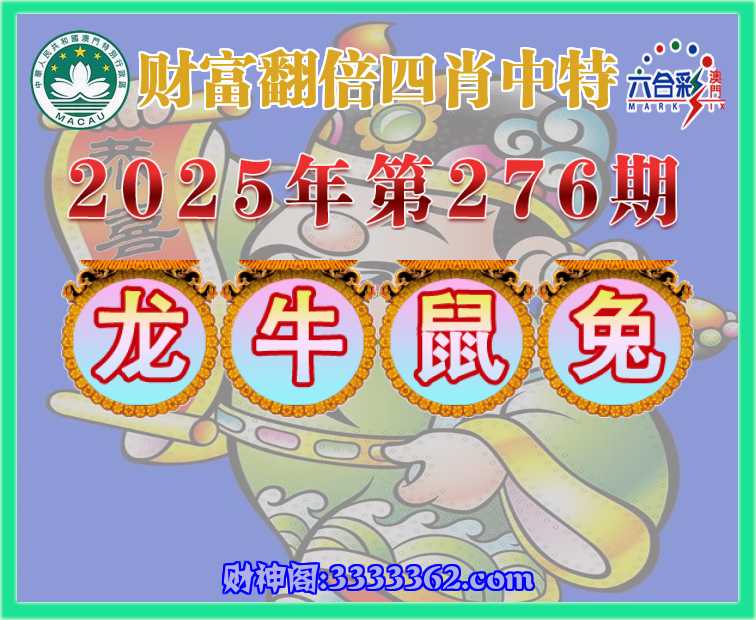 276期: 🍒『财富翻倍』 🍒四肖中特🍒【龙.牛.鼠.兔】开:00准