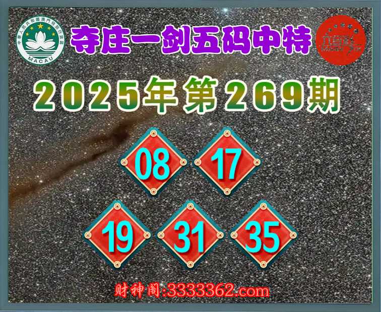 269期:『夺庄一剑』 ♣️五码中特♣️【08.17.19.31.35】开:31