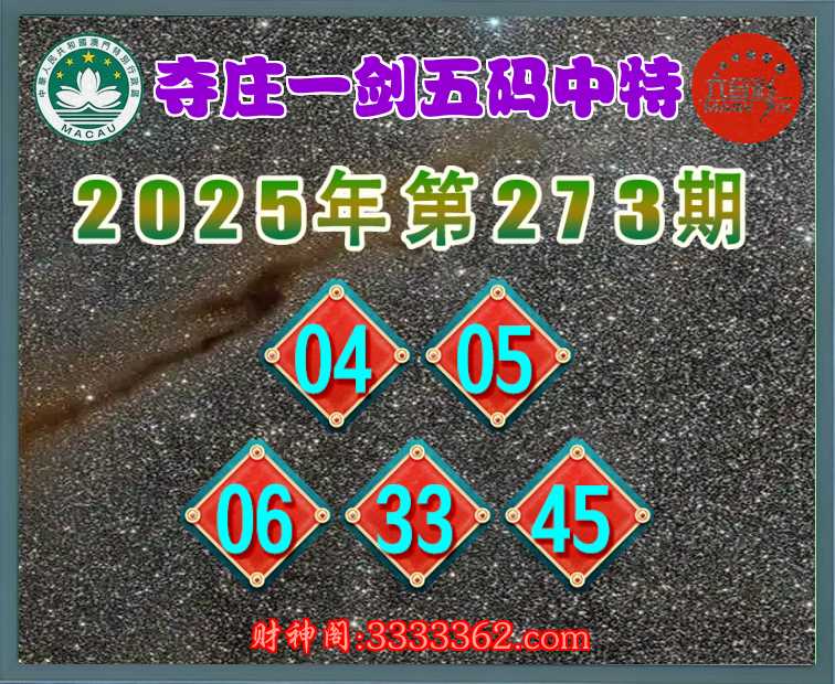 273期:『夺庄一剑』 ♣️五码中特♣️【04.05.06.33.45】开:04