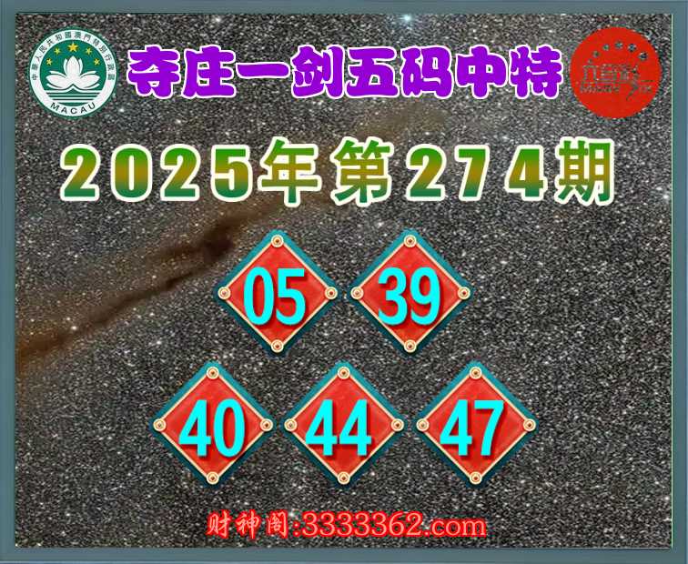 274期:『夺庄一剑』 ♣️五码中特♣️【05.39.40.44.47】开:44