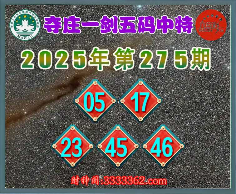 275期:『夺庄一剑』 ♣️五码中特♣️【05.17.23.45.46】开:45