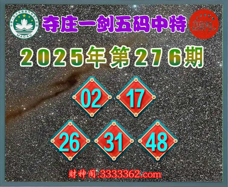 276期:『夺庄一剑』 ♣️五码中特♣️【02.17.26.31.48】开:00准
