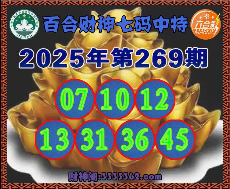 269期:『百合财神』 🪢七码中特🪢【07.10.12.13.31.36.45】开:31