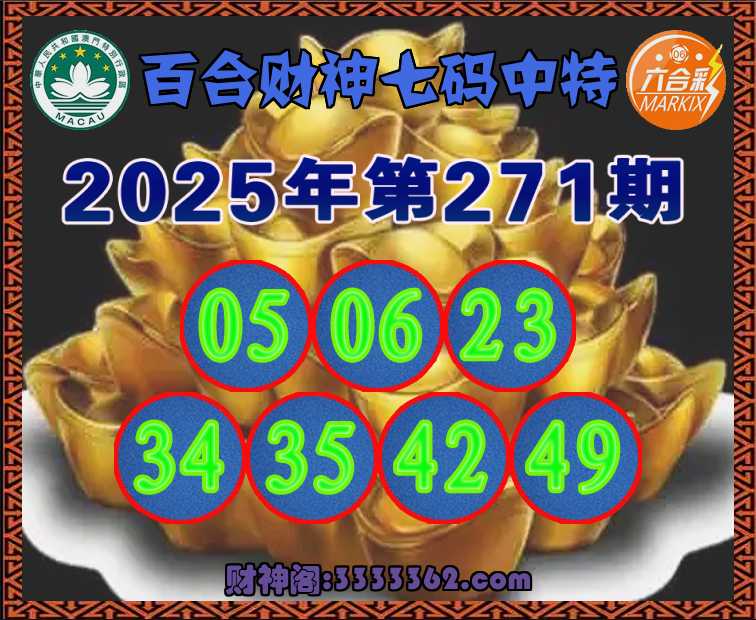 271期:『百合财神』 🪢七码中特🪢【05.06.23.34.35.42.49】开:06