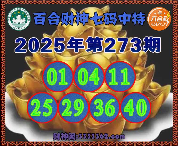 273期:『百合财神』 🪢七码中特🪢【01.04.11.25.29.36.40】开:04