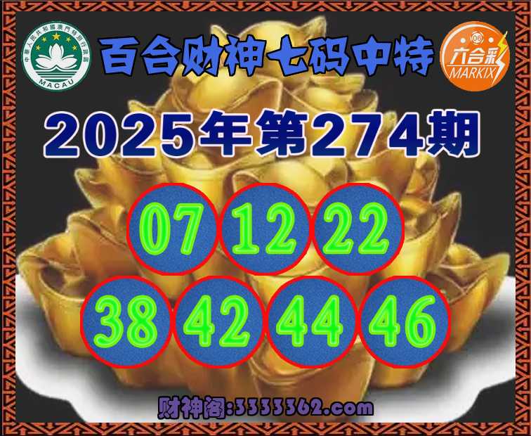 274期:『百合财神』 🪢七码中特🪢【07.12.22.38.42.44.46】开:44