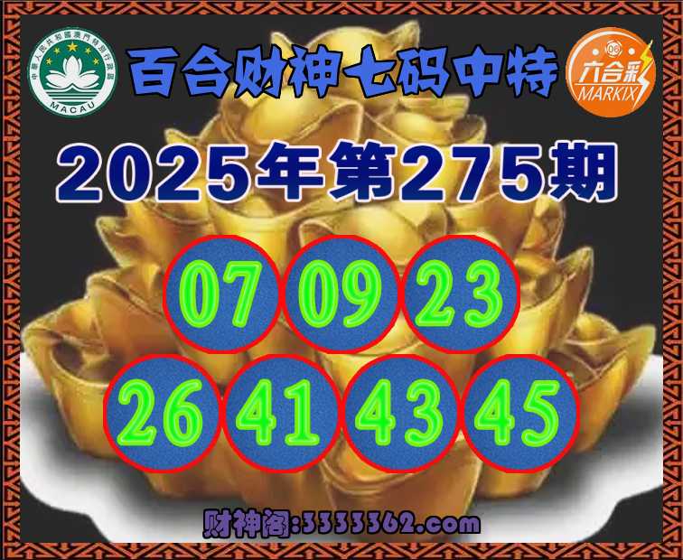 275期:『百合财神』 🪢七码中特🪢【07.09.23.26.41.43.45】开:45