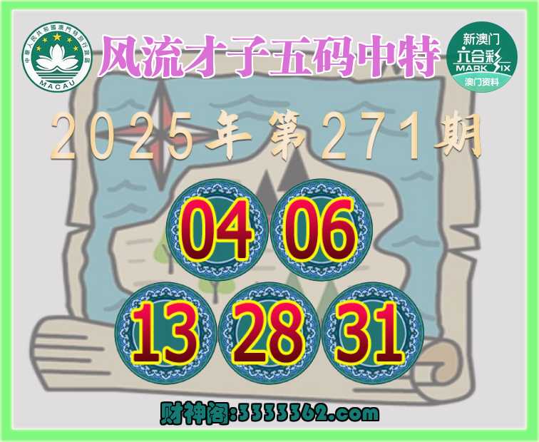 271期:〖风流才子〗 🎆五码中特🎆【04.06.13.28.31】开:06