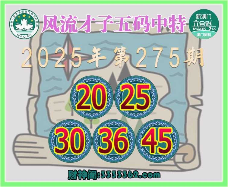 275期:〖风流才子〗 🎆五码中特🎆【20.25.30.36.45】开:45