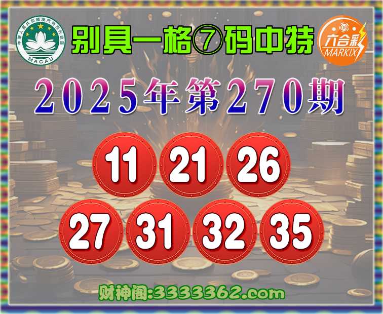 270期: ✌️『别具一格』 ✌️⑦码中特✌️【11.21.26.27.31.32.35】开:35