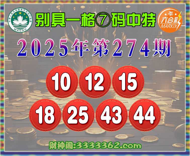 274期: ✌️『别具一格』 ✌️⑦码中特✌️【10.12.15.18.25.43.44】开:44