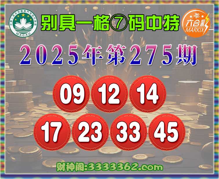 275期: ✌️『别具一格』 ✌️⑦码中特✌️【09.12.14.17.23.33.45】开:45