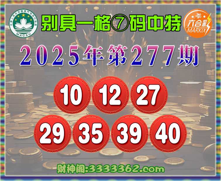 277期: ✌️『别具一格』 ✌️⑦码中特✌️【10.12.27.29.35.39.40】开:00准
