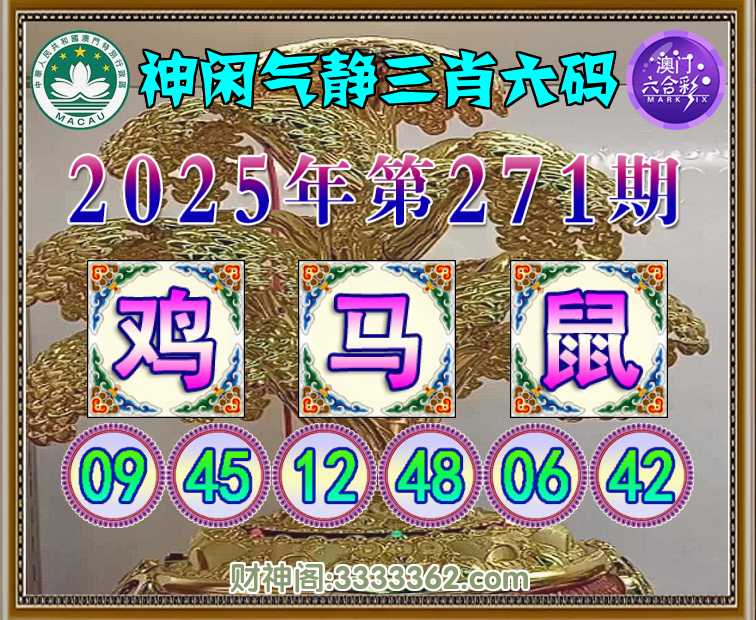 271期:〖神闲气静〗 🥓三肖六码🥓【鸡马】开:鼠06