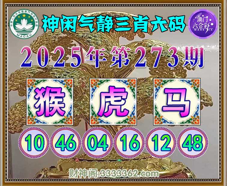 273期:〖神闲气静〗 🥓三肖六码🥓【猴马】开:虎04