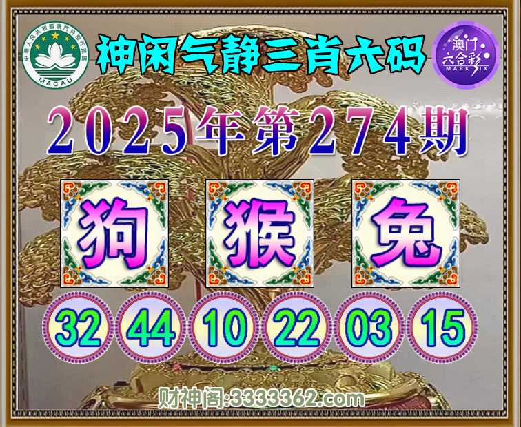 274期:〖神闲气静〗 🥓三肖六码🥓【猴兔】开:狗44
