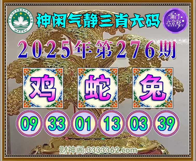 276期:〖神闲气静〗 🥓三肖六码🥓【蛇兔】开:鸡09