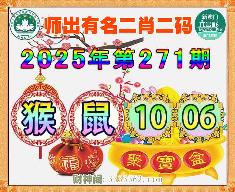 271期:『师出有名』 👈二肖二码👈【猴】【10.06】开:鼠06
