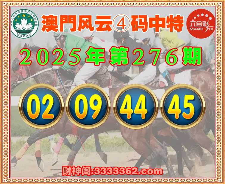 276期:《澳門风云》 🎪④码中特🎪【02.09.44.45】开:09