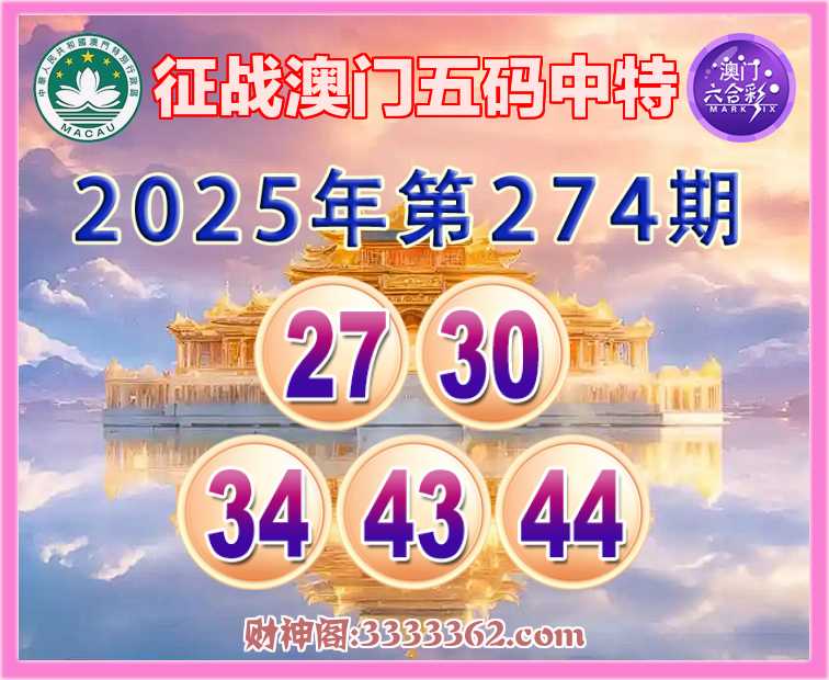 274期:《征战澳门》 🥧五码中特🥧【27.30.34.43.44】开:44