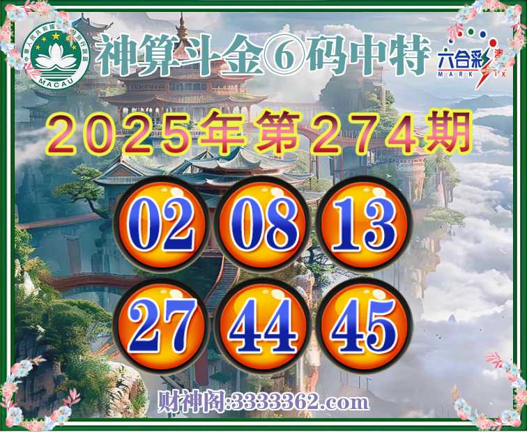 274期:【神算斗金】 🥓⑥码中特🥓【02.08.13.27.44.45】开:44