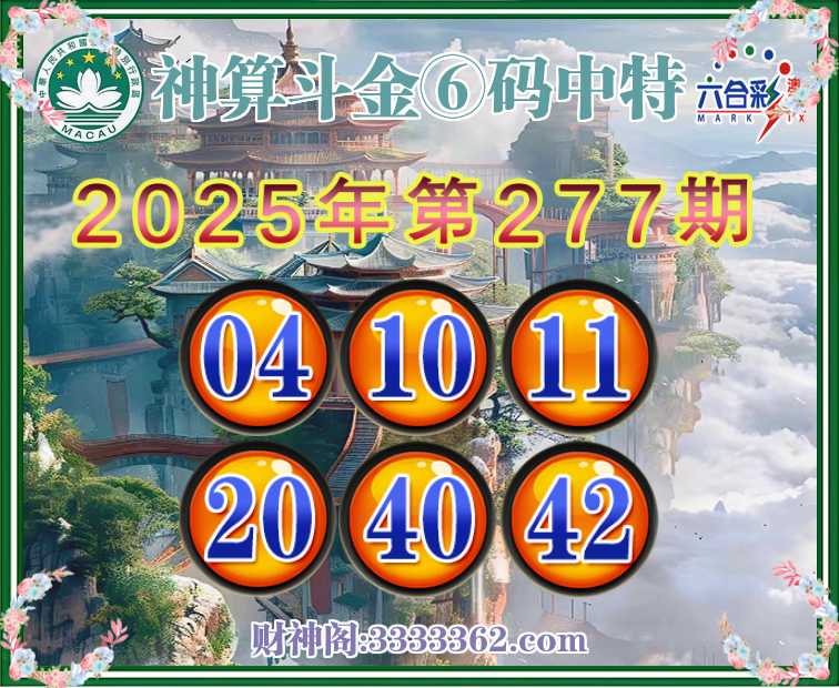 277期:【神算斗金】 🥓⑥码中特🥓【04.10.11.20.40.42】开:00准
