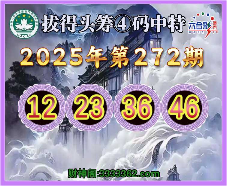 272期:《拔得头筹》 🎀④码中特🎀【12.23.36.46】开:36