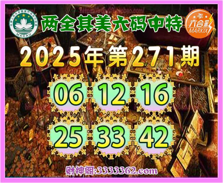271期: 🏃‍♀️『两全其美』 🏃‍♀️六码中特🏃‍♀️【06.12.16.25.33.42】开:06