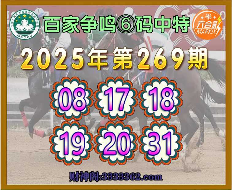 269期: 🚡『百家争鸣』 🚡⑥码中特🚡【08.17.18.19.20.31】开:31