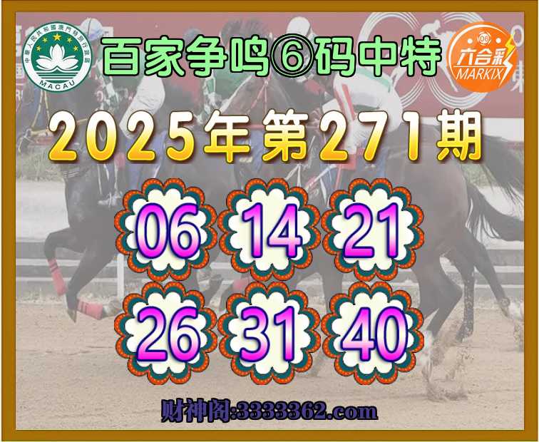 271期: 🚡『百家争鸣』 🚡⑥码中特🚡【06.14.21.26.31.40】开:06