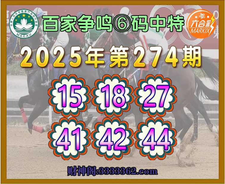 274期: 🚡『百家争鸣』 🚡⑥码中特🚡【15.18.27.41.42.44】开:44