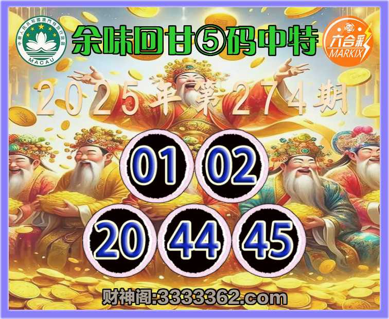 274期:【余味回甘】 🕯⑤码中特🕯【01.02.20.44.45】开:44