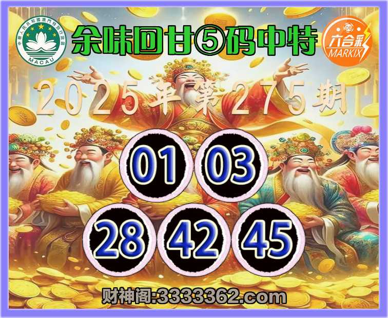275期:【余味回甘】 🕯⑤码中特🕯【01.03.28.42.45】开:45