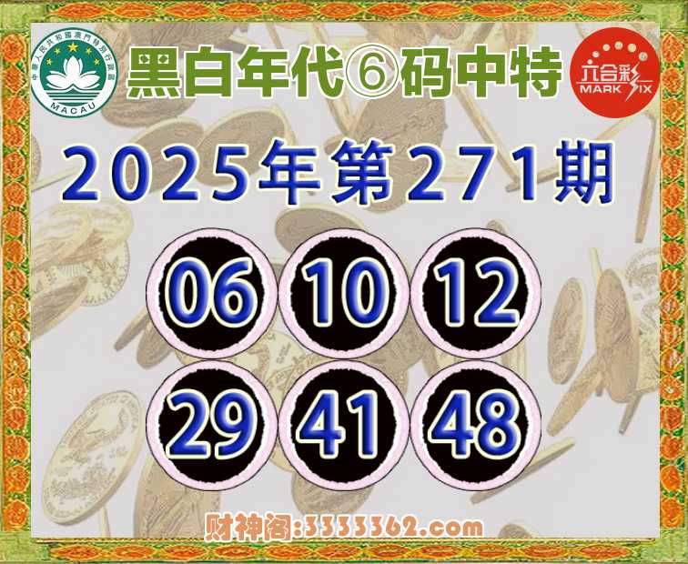 271期:『黑白年代』 🎖️⑥码中特🎖️【06.10.12.29.41.48】开:06