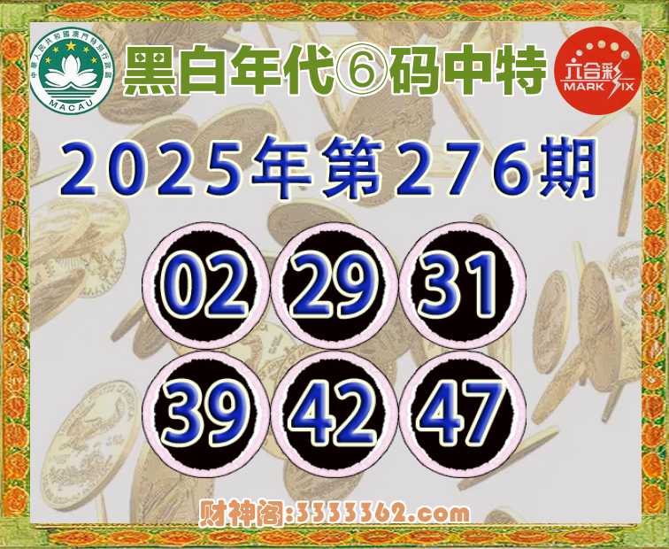 276期:『黑白年代』 🎖️⑥码中特🎖️【02.29.31.39.42.47】开:00准