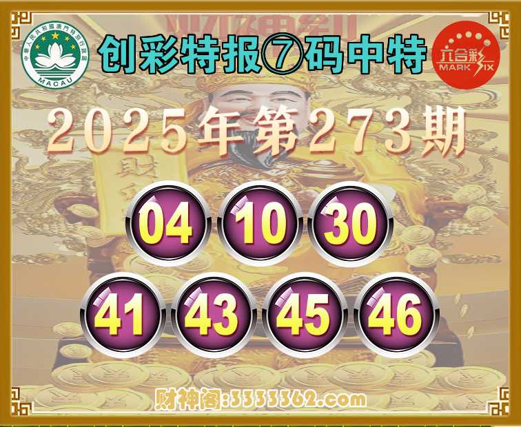 273期:【创彩特报】 🧤⑦码中特🧤【04.10.30.41.43.45.46】开:04