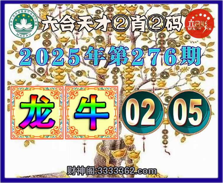 276期:《六合天才》 ✌️②肖②码✌️【龙牛】【02.05】开:00准
