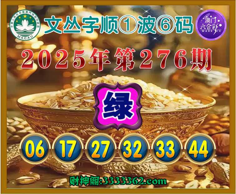 276期:『文丛字顺』 ♣️①波⑥码♣️【绿波】开:00准
