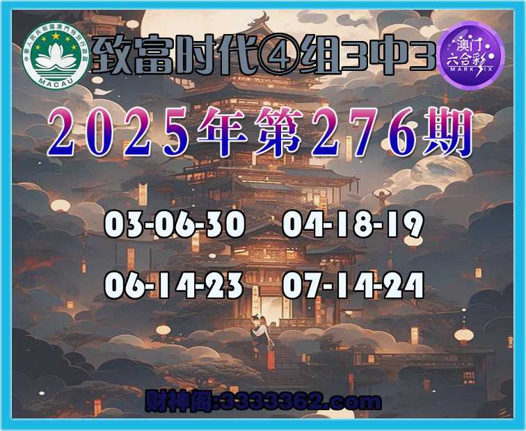 主题 : 276期:致富时代【④组3中3】〓 步步发财