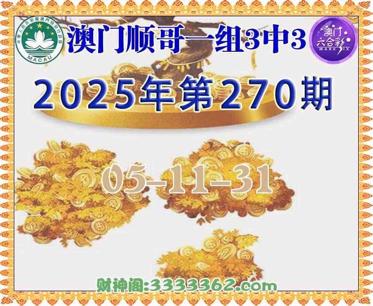 270期:【澳门顺哥】 🏵️一组3中3🏵️【05-11-31