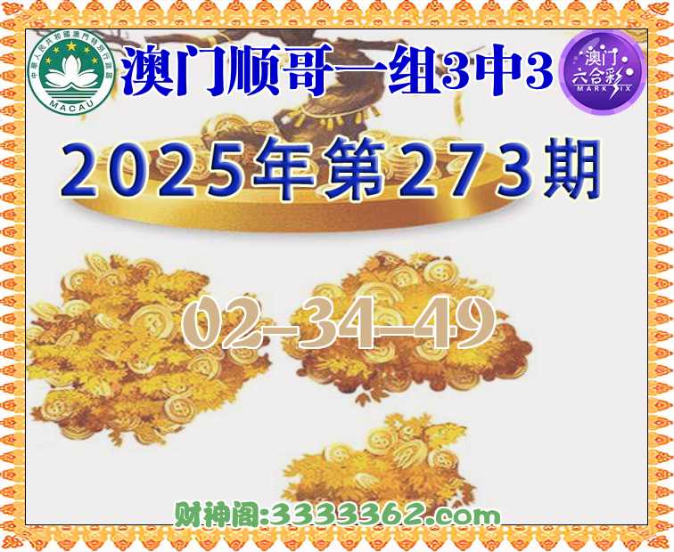 273期:【澳门顺哥】 🏵️一组3中3🏵️【02-34-49