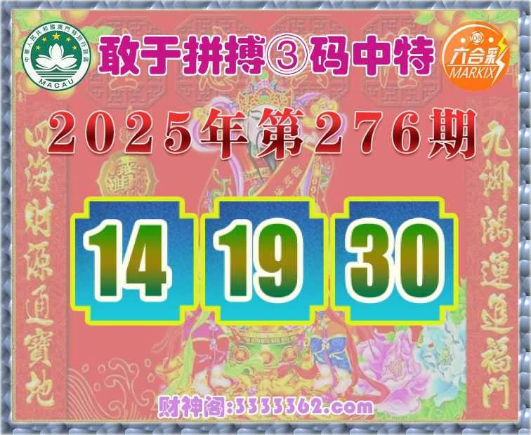 276期:【敢于拼搏】 🌸③码中特🌸【14.19.30】开:00准