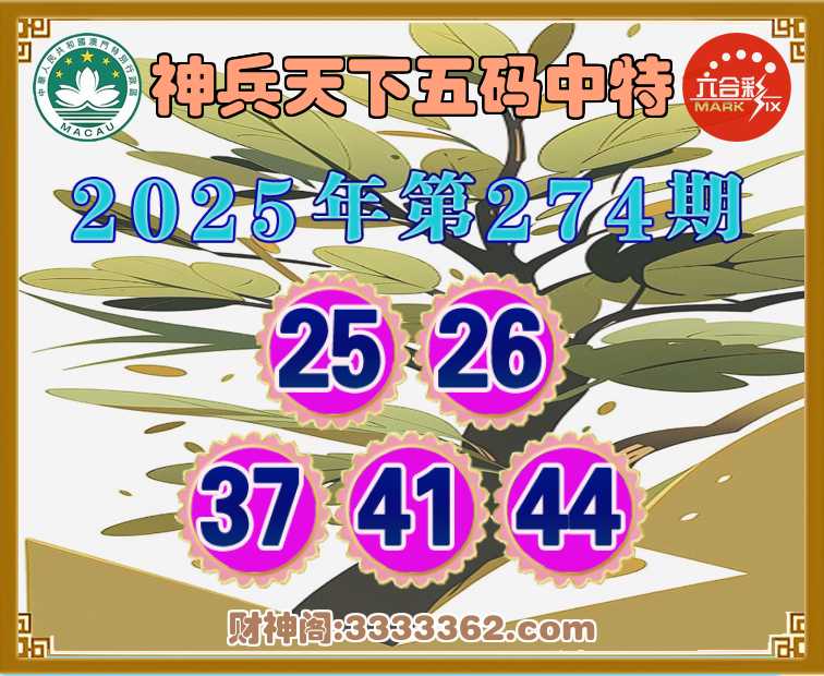 274期:『神兵天下』 😜五码中特😜【25.26.37.41.44】开:44